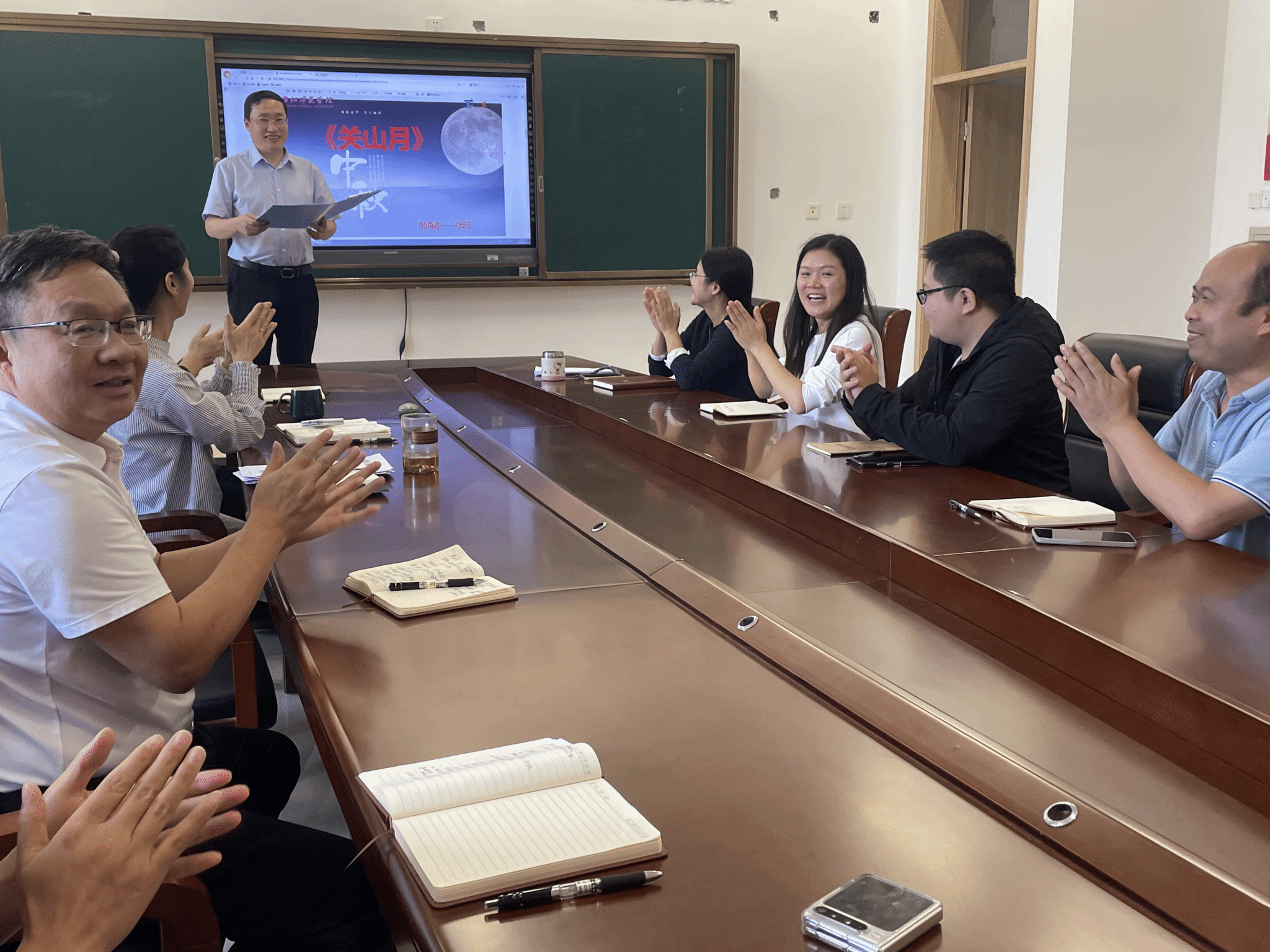 本次诗词大会以“月满杏坛・诗韵中秋 —— 让三尺讲台与千年诗魂同框”为主题,紧扣立德树人根本任务,将中华诗词之美与教师职业素养提升深度融合。活动前期,公司工会委员精心筹备,从场地布置(座位排列、设备调试)到流程细化,每一个环节都力求周全,为教职工打造了温馨雅致的诵读环境。